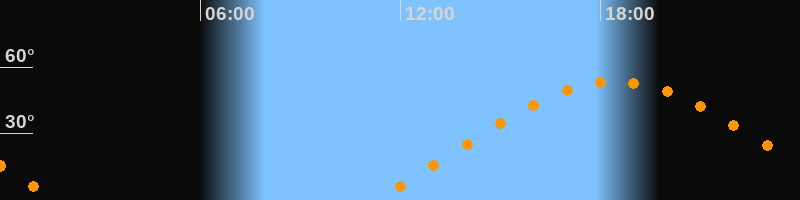 Höchster Stand (Kulmination)18:27 Uhr (h = 53,4°)