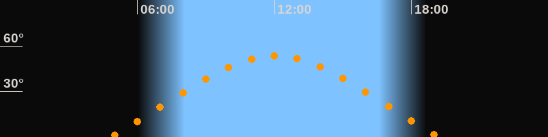 | Höchster Stand (Kulmination) | 12:01 Uhr (h = 53,4°) |