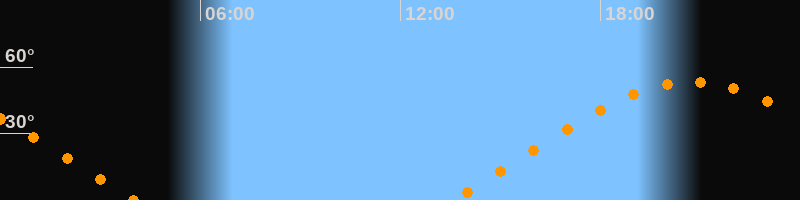 | Aufgang | 13:31 Uhr im Nordosten (αAz = 66,5°) |