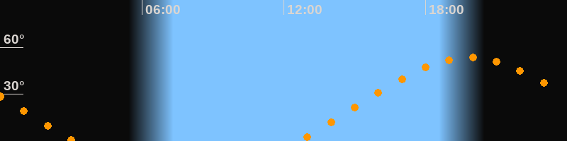 | Aufgang | 12:36 Uhr im Nordosten (αAz = 66,5°) |