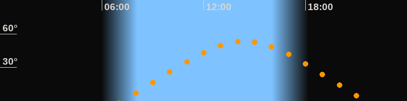 | Höchster Stand (Kulmination) | 14:23 Uhr (h = 53,4°) |