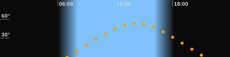 | Höchster Stand (Kulmination) | 14:12 Uhr (h = 53,4°) |