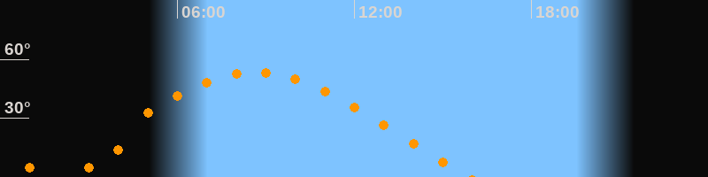| Höchster Stand (Kulmination) | 08:38 Uhr (h = 53,4°) |