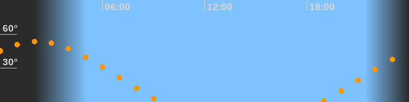 | Untergang | 09:24 Uhr im Nordwesten (αAz = 293,5°) |