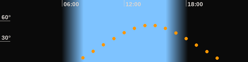 | Höchster Stand (Kulmination) | 14:28 Uhr (h = 53,4°) |