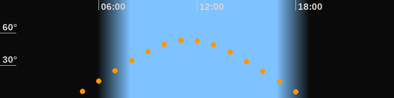 | Höchster Stand (Kulmination) | 11:27 Uhr (h = 53,4°) |