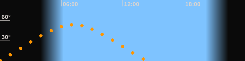 | Höchster Stand (Kulmination) | 07:09 Uhr (h = 53,4°) |