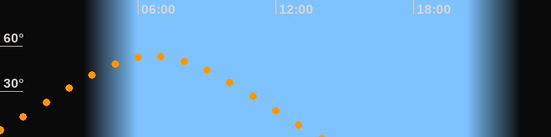 | Höchster Stand (Kulmination) | 06:41 Uhr (h = 53,4°) |
