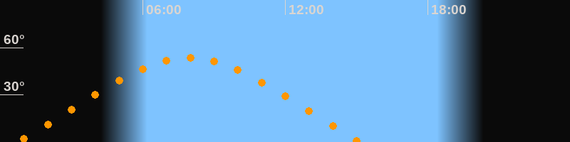 | Höchster Stand (Kulmination) | 07:56 Uhr (h = 53,4°) |