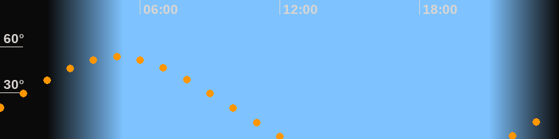 | Höchster Stand (Kulmination) | 05:00 Uhr (h = 53,4°) |