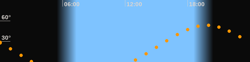 | Aufgang | 12:35 Uhr im Nordosten (αAz = 66,5°) |