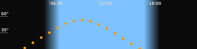 | Höchster Stand (Kulmination) | 09:55 Uhr (h = 53,4°) |