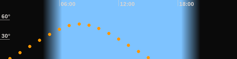 | Höchster Stand (Kulmination) | 08:05 Uhr (h = 53,4°) |