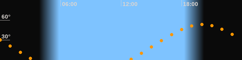 | Aufgang | 12:48 Uhr im Nordosten (αAz = 66,5°) |