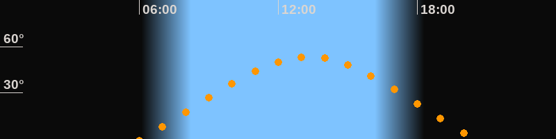 | Höchster Stand (Kulmination) | 13:17 Uhr (h = 53,4°) |