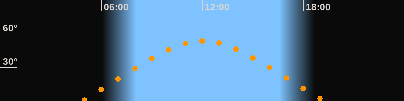| Höchster Stand (Kulmination) | 12:03 Uhr (h = 53,4°) |