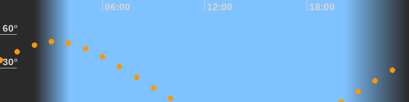 | Aufgang | 19:53 Uhr im Nordosten (αAz = 66,5°) |