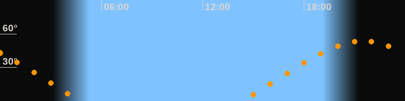| Aufgang | 14:15 Uhr im Nordosten (αAz = 66,5°) |