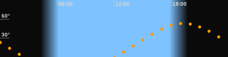 | Aufgang | 12:01 Uhr im Nordosten (αAz = 66,5°) |