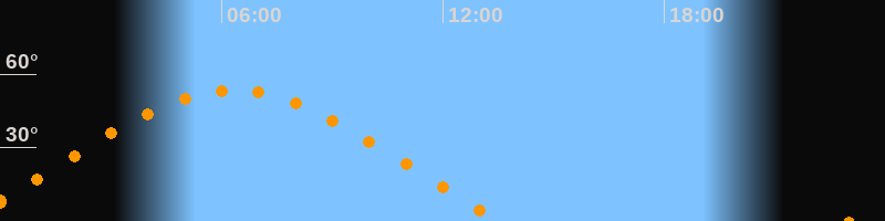 | Höchster Stand (Kulmination) | 06:18 Uhr (h = 53,4°) |