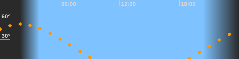 | Aufgang | 18:48 Uhr im Nordosten (αAz = 66,5°) |