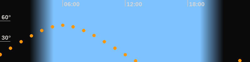 | Höchster Stand (Kulmination) | 06:00 Uhr (h = 53,4°) |