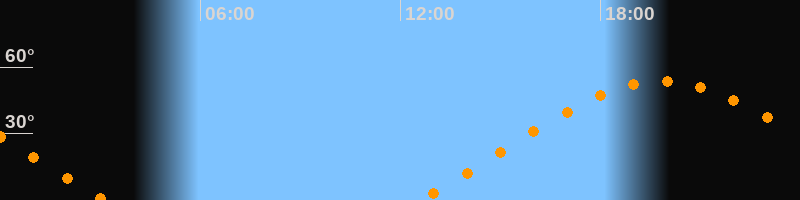 | Aufgang | 12:36 Uhr im Nordosten (αAz = 66,5°) |