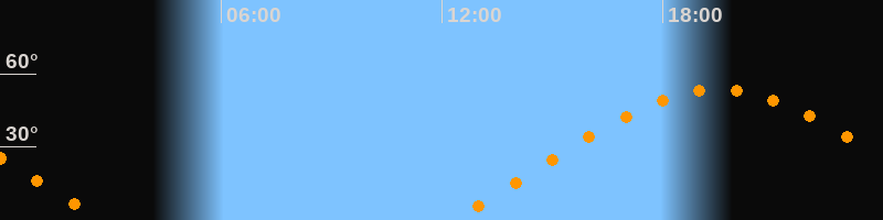 | Aufgang | 12:16 Uhr im Nordosten (αAz = 66,5°) |