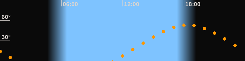 | Höchster Stand (Kulmination) | 18:20 Uhr (h = 53,4°) |
