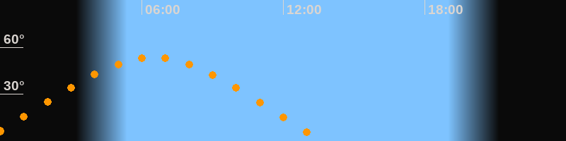 | Höchster Stand (Kulmination) | 06:28 Uhr (h = 53,4°) |
