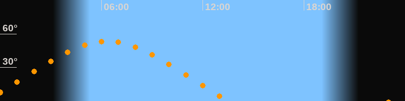 | Höchster Stand (Kulmination) | 06:20 Uhr (h = 53,4°) |