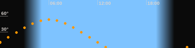 | Höchster Stand (Kulmination) | 06:01 Uhr (h = 53,4°) |