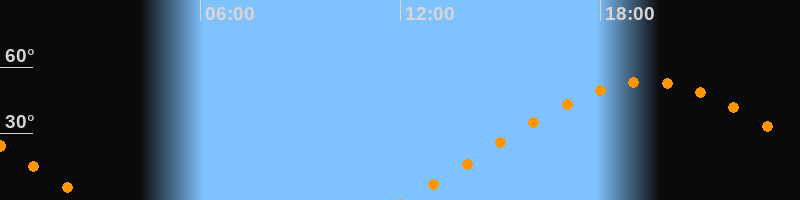 | Aufgang | 12:09 Uhr im Nordosten (αAz = 66,5°) |