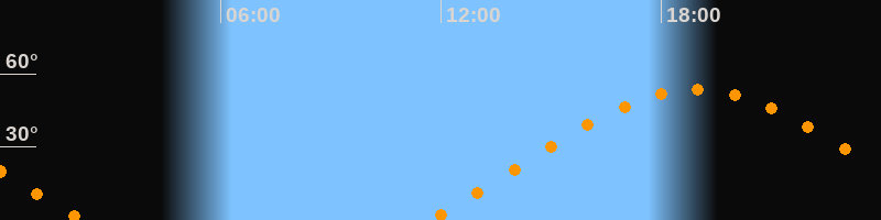 | Aufgang | 11:42 Uhr im Nordosten (αAz = 66,5°) |