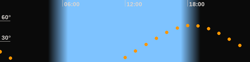 | Aufgang | 11:10 Uhr im Nordosten (αAz = 66,5°) |