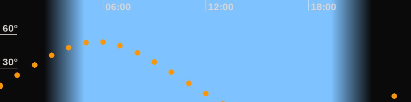 | Höchster Stand (Kulmination) | 05:38 Uhr (h = 53,4°) |
