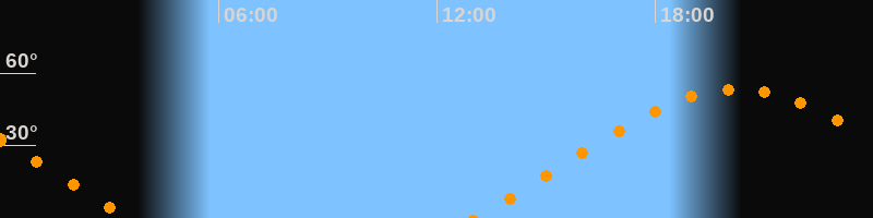 | Aufgang | 13:01 Uhr im Nordosten (αAz = 66,5°) |