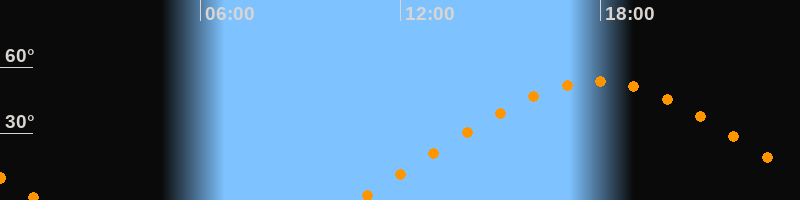 | Höchster Stand (Kulmination) | 17:54 Uhr (h = 53,4°) |
