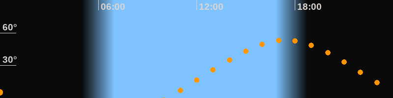 | Höchster Stand (Kulmination) | 17:23 Uhr (h = 53,4°) |