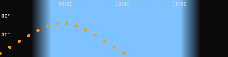 | Höchster Stand (Kulmination) | 06:32 Uhr (h = 53,4°) |