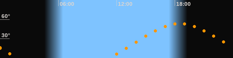 | Aufgang | 11:15 Uhr im Nordosten (αAz = 66,5°) |