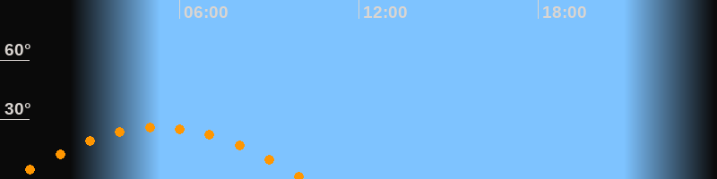 Daten und Fakten: NGC6822 (IC 4895, PGC 63616) Rektaszension 19h 44m 56s Deklination -14° 47' 21'' Helligkeit 8,7 mag (14,4 mag/arcmin^2) Scheinbare Ausdehnung 15,5' x 13,5' Entfernung ca. 1,6 Mio ly Ausdehnung 6000 ly Sichtbarkeit in Zwickau 16.05.2004 Aufgang 00:18 Uhr im Osten (αAz = 110,4°) Höchster Stand (Kulmination) 05:18 Uhr (h = 26,1°) Untergang 10:14 Uhr im Westen (αAz = 249,6°) Standort: Zwickau, Algorithmen siehe Credits