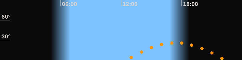 Daten und Fakten: NGC6822 (IC 4895, PGC 63616) Rektaszension 19h 44m 56s Deklination -14° 47' 21'' Helligkeit 8,7 mag (14,4 mag/arcmin^2) Scheinbare Ausdehnung 15,5' x 13,5' Entfernung ca. 1,6 Mio ly Ausdehnung 6000 ly Sichtbarkeit in Zwickau 29.10.2007 Aufgang 12:28 Uhr im Osten (αAz = 110,4°) Höchster Stand (Kulmination) 17:24 Uhr (h = 26,1°) Untergang 22:20 Uhr im Westen (αAz = 249,6°) Standort: Zwickau, Algorithmen siehe Credits
