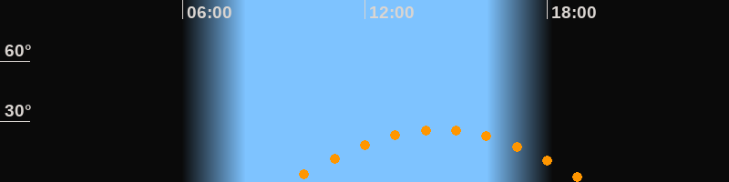 Daten und Fakten: NGC6822 (IC 4895, PGC 63616) Rektaszension 19h 44m 56s Deklination -14° 47' 21'' Helligkeit 8,7 mag (14,4 mag/arcmin^2) Scheinbare Ausdehnung 15,5' x 13,5' Entfernung ca. 1,6 Mio ly Ausdehnung 6000 ly Sichtbarkeit in Zwickau 13.12.2009 Aufgang 09:29 Uhr im Osten (αAz = 110,4°) Höchster Stand (Kulmination) 14:25 Uhr (h = 26,1°) Untergang 19:21 Uhr im Westen (αAz = 249,6°) Standort: Zwickau, Algorithmen siehe Credits