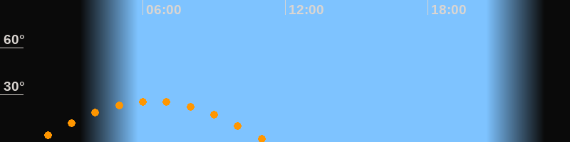 Daten und Fakten: NGC6822 (IC 4895, PGC 63616) Rektaszension 19h 44m 56s Deklination -14° 47' 21'' Helligkeit 8,7 mag (14,4 mag/arcmin^2) Scheinbare Ausdehnung 15,5' x 13,5' Entfernung ca. 1,6 Mio ly Ausdehnung 6000 ly Sichtbarkeit in Zwickau 30.04.2010 Aufgang 01:22 Uhr im Osten (αAz = 110,4°) Höchster Stand (Kulmination) 06:22 Uhr (h = 26,1°) Untergang 11:19 Uhr im Westen (αAz = 249,6°) Standort: Zwickau, Algorithmen siehe Credits