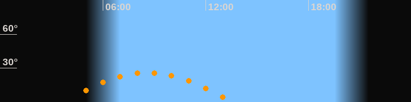 Daten und Fakten: NGC6822 (IC 4895, PGC 63616) Rektaszension 19h 44m 56s Deklination -14° 47' 21'' Helligkeit 8,7 mag (14,4 mag/arcmin^2) Scheinbare Ausdehnung 15,5' x 13,5' Entfernung ca. 1,6 Mio ly Ausdehnung 6000 ly Sichtbarkeit in Zwickau 27.03.2011 Aufgang 03:41 Uhr im Osten (αAz = 110,4°) Höchster Stand (Kulmination) 08:37 Uhr (h = 26,1°) Untergang 13:33 Uhr im Westen (αAz = 249,6°) Standort: Zwickau, Algorithmen siehe Credits