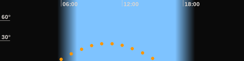 Daten und Fakten: NGC6822 (IC 4895, PGC 63616) Rektaszension 19h 44m 56s Deklination -14° 47' 21'' Helligkeit 8,7 mag (14,4 mag/arcmin^2) Scheinbare Ausdehnung 15,5' x 13,5' Entfernung ca. 1,6 Mio ly Ausdehnung 6000 ly Sichtbarkeit in Zwickau 12.02.2012 Aufgang 05:39 Uhr im Osten (αAz = 110,4°) Höchster Stand (Kulmination) 10:35 Uhr (h = 26,1°) Untergang 15:31 Uhr im Westen (αAz = 249,6°) Standort: Zwickau, Algorithmen siehe Credits