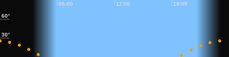 Daten und Fakten: NGC6822 (IC 4895, PGC 63616) Rektaszension 19h 44m 56s Deklination -14° 47' 21'' Helligkeit 8,7 mag (14,4 mag/arcmin^2) Scheinbare Ausdehnung 15,5' x 13,5' Entfernung ca. 1,6 Mio ly Ausdehnung 6000 ly Sichtbarkeit in Zwickau 11.08.2012 Aufgang 18:35 Uhr im Osten (αAz = 110,4°) Höchster Stand (Kulmination) 23:31 Uhr (h = 26,1°) Untergang 04:32 Uhr im Westen (αAz = 249,6°) Standort: Zwickau, Algorithmen siehe Credits