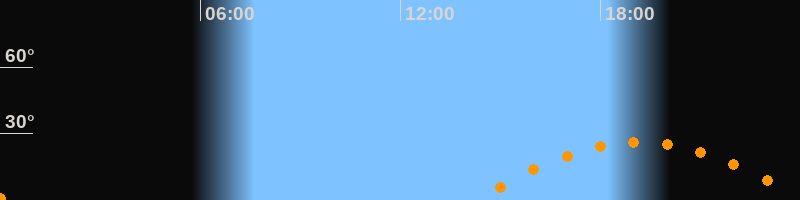 Daten und Fakten: NGC6822 (IC 4895, PGC 63616) Rektaszension 19h 44m 56s Deklination -14° 47' 21'' Helligkeit 8,7 mag (14,4 mag/arcmin^2) Scheinbare Ausdehnung 15,5' x 13,5' Entfernung ca. 1,6 Mio ly Ausdehnung 6000 ly Sichtbarkeit in Zwickau 17.10.2022 Aufgang 14:13 Uhr im Osten (αAz = 110,4°) Höchster Stand (Kulmination) 19:10 Uhr (h = 26,1°) Untergang 00:06 Uhr im Westen (αAz = 249,6°) Standort: Zwickau, Algorithmen siehe Credits