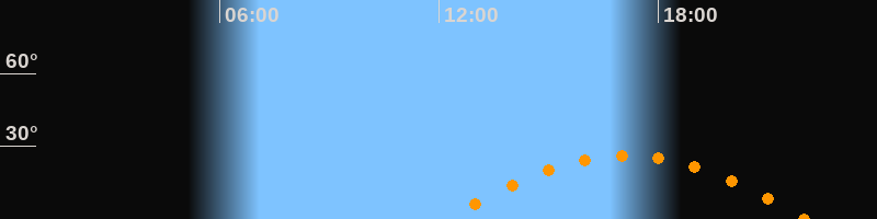 Daten und Fakten: NGC6822 (IC 4895, PGC 63616) Rektaszension 19h 44m 56s Deklination -14° 47' 21'' Helligkeit 8,7 mag (14,4 mag/arcmin^2) Scheinbare Ausdehnung 15,5' x 13,5' Entfernung ca. 1,6 Mio ly Ausdehnung 6000 ly Sichtbarkeit in Zwickau 02.11.2022 Aufgang 12:11 Uhr im Osten (αAz = 110,4°) Höchster Stand (Kulmination) 17:07 Uhr (h = 26,1°) Untergang 22:03 Uhr im Westen (αAz = 249,6°) Standort: Zwickau, Algorithmen siehe Credits